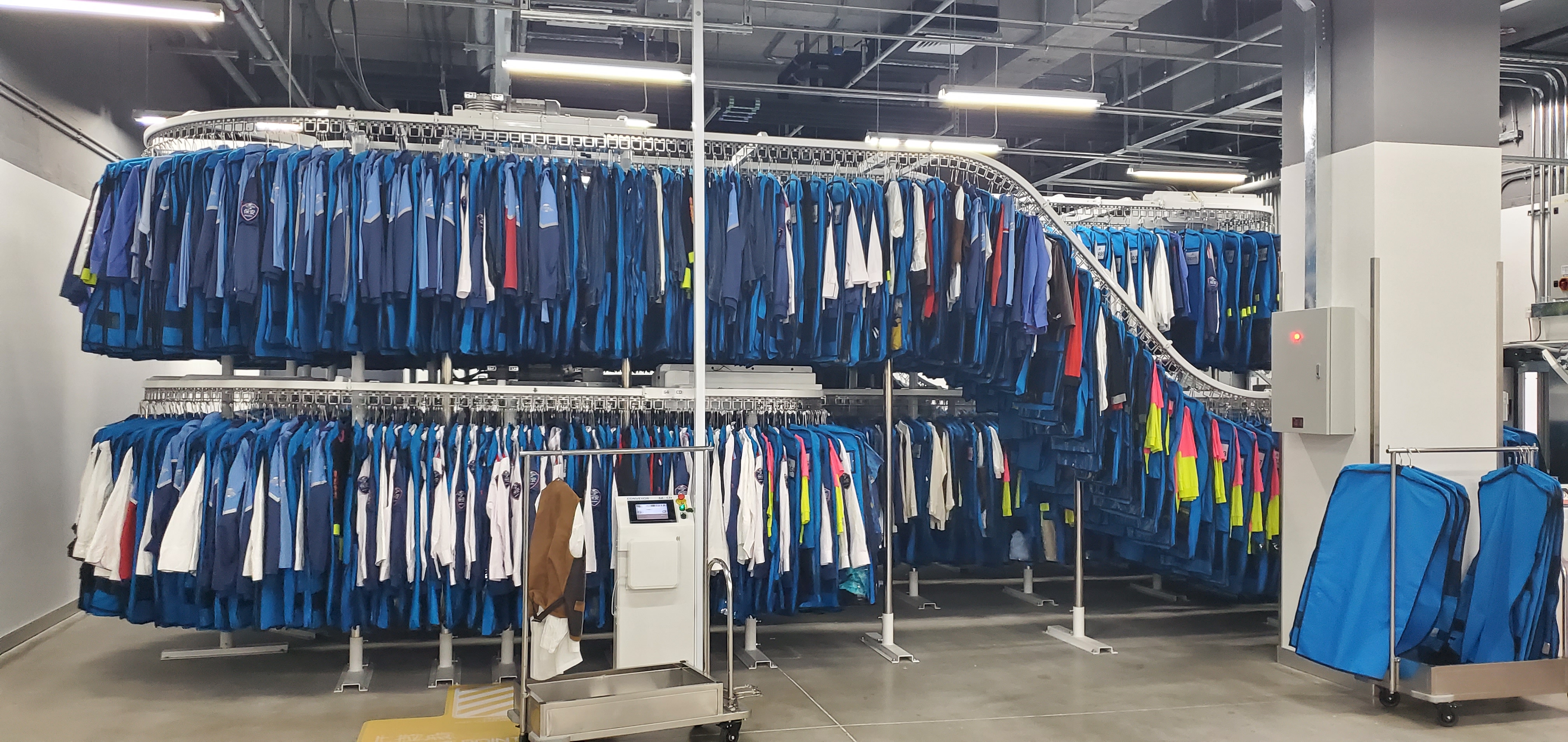 Fully Automated Uniforms Management System conveyors, with automated delivery door and RFID tracking system. Made in Italy ZCS - Zucchetti Centro Sistemi presents its automated system for storage, tracking and dispatching the Uniforms for Hotels, Casinos, food factory, security, Airport, Airlines, Police & Fire station, Prison and all organization with large number of employee with uniforms. Manual counting, assignment, delivery and inventory control of hundreds of uniforms is inefficient and unsustainable.