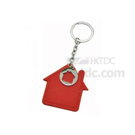 House Shape Leather/PU Keychain with Metal Angel Charm
