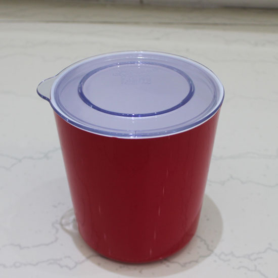 This is a household canister with a transparent cover. It features a cylindrical body with a bright exterior. This canister is great for storing assorted sundry items.