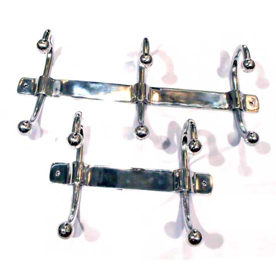 These two sets of household hooks feature robust construction. Each set comes with hooks connected by a strong and durable metal bar. The hooks feature ball-shaped ends for reliable hanging of items.