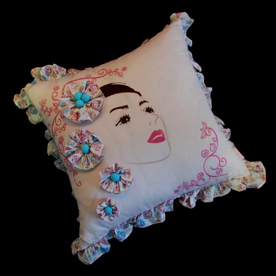 Highlighted is a printed pillow with a square-shaped design. This ornate pillow is made of cotton and satin fabric, giving it a comfortable touch. Adorned by lace trim details, this pillow is the ideal addition to your living room.
