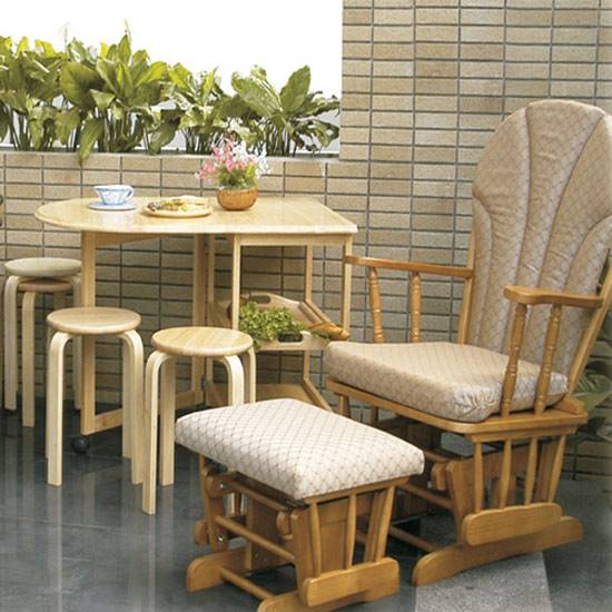 This set of wooden household products includes the furniture you might need in the dining room. It includes four dining room chairs, a table, a chair and its leg rest. The whole set is very suitable for couples' homes.