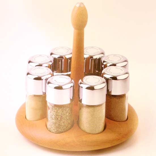 This household tableware set comes with a top-quality wooden stand with a handle. The 8 bottles are carefully designed and made for the classical appearance. This item allows you to serve pepper, salt and so on.