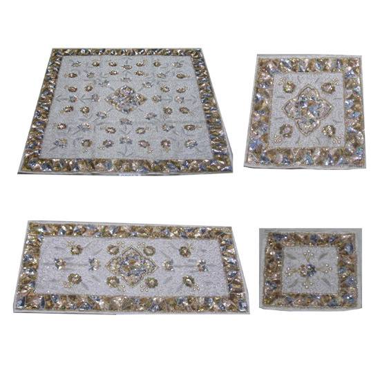 These textile madeups include handicrafts, table covers, mats and napkins. They have enchanting floral pattern. They have drops in matching color on edges.