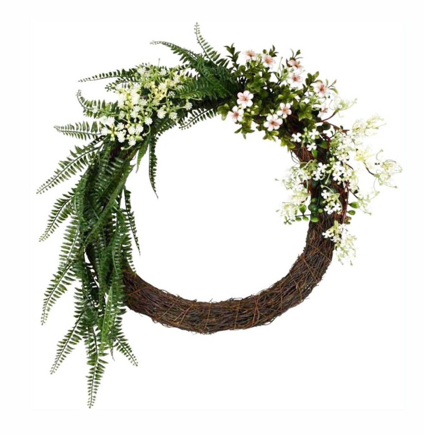 This artificial wreath is made of weather and UV resistant plastic. It creates a green accent to beautify the space. It is a good decoration for your home or workplace.