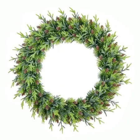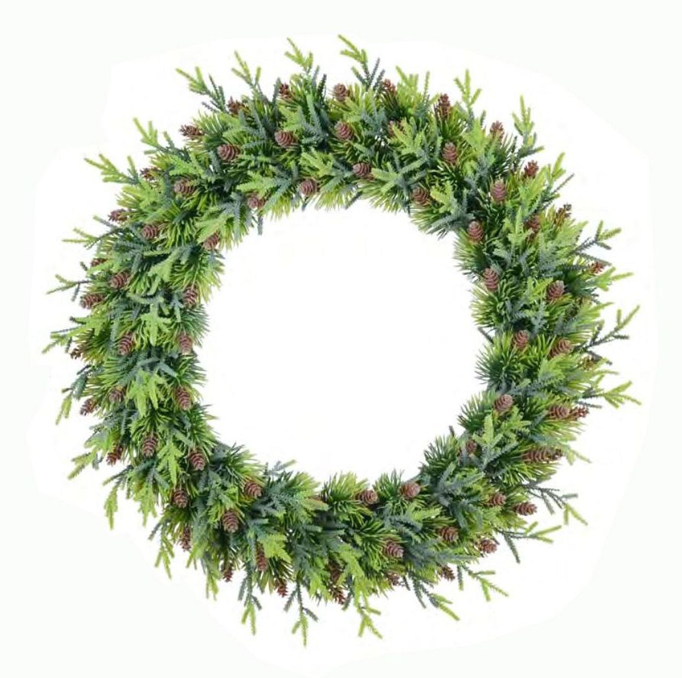 This artificial wreath is made of weather and UV resistant plastic. It creates a green accent to beautify the space. It is a good decoration for your home or workplace.