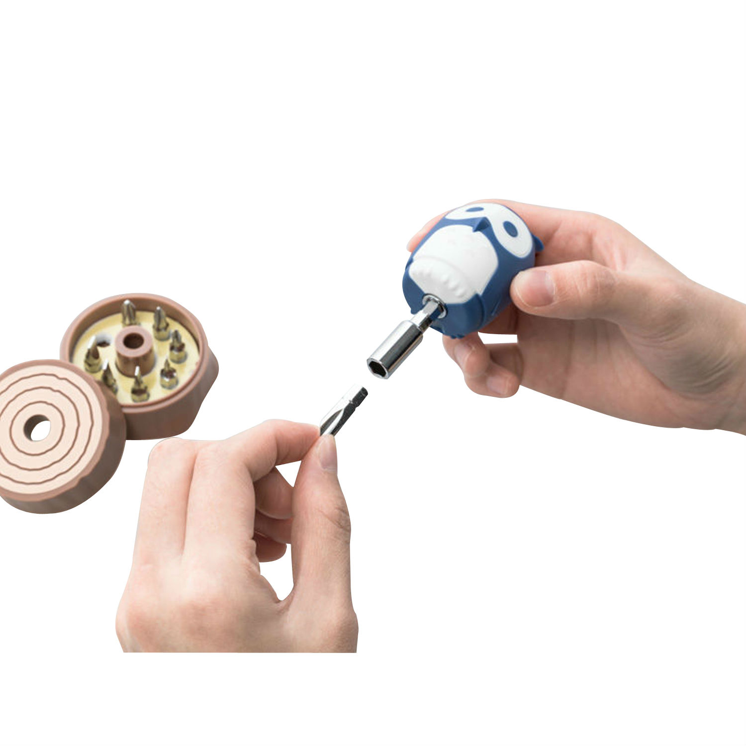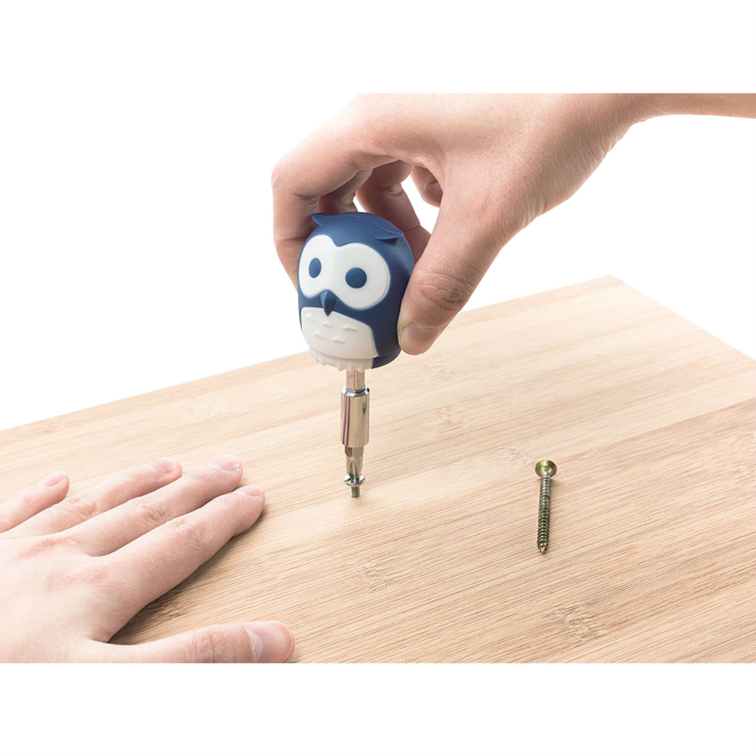 - Owl-shaped screwdriver and tree trunk base to store the bits.