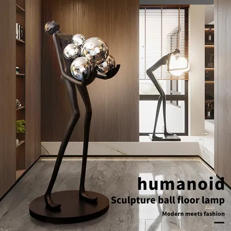 Human Lamp Floor Light Design Luxury Hotel Nordic Living Room Corner Resin Sculpture Body Lighting for Living Room Glass Ball