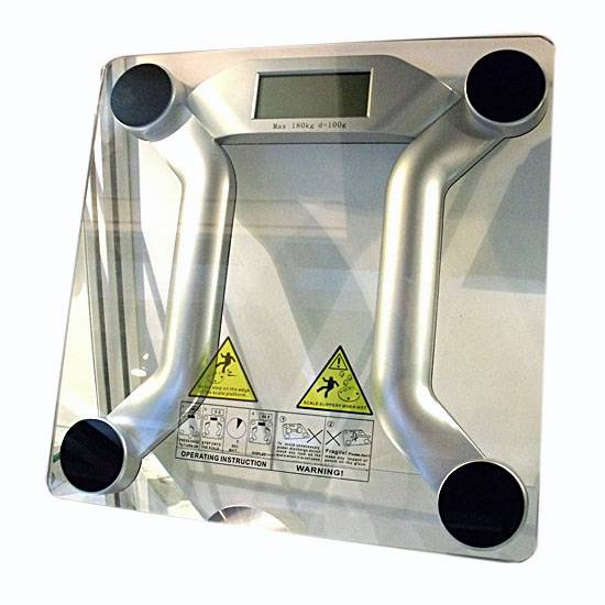 The human scale displays readings on a 30mm LCD screen. It turns on when it is stepped on, and automatically switches off in 10 seconds. Keep an eye on your weight with this stylish and precision digital scale.