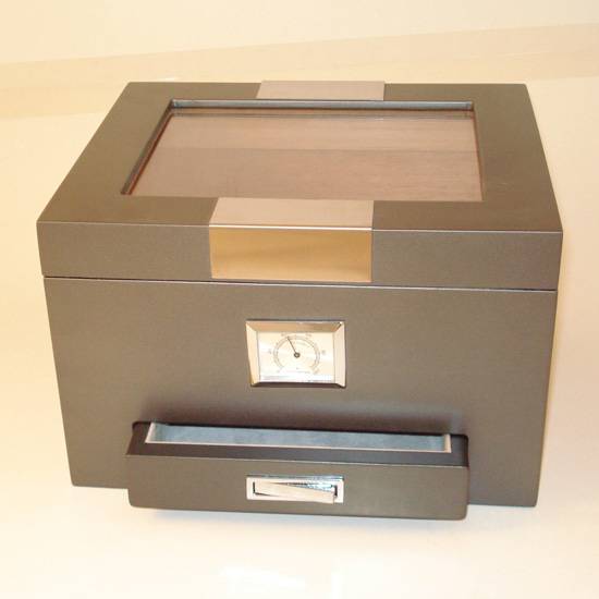 This is an MDF wooden humidor for cigars and pipe tobacco. With a display meter indicating the humidity levels inside, this case is practical and useful. Great for cigar lovers, this humidor will keep beloved cigars safe and maintain their quality.