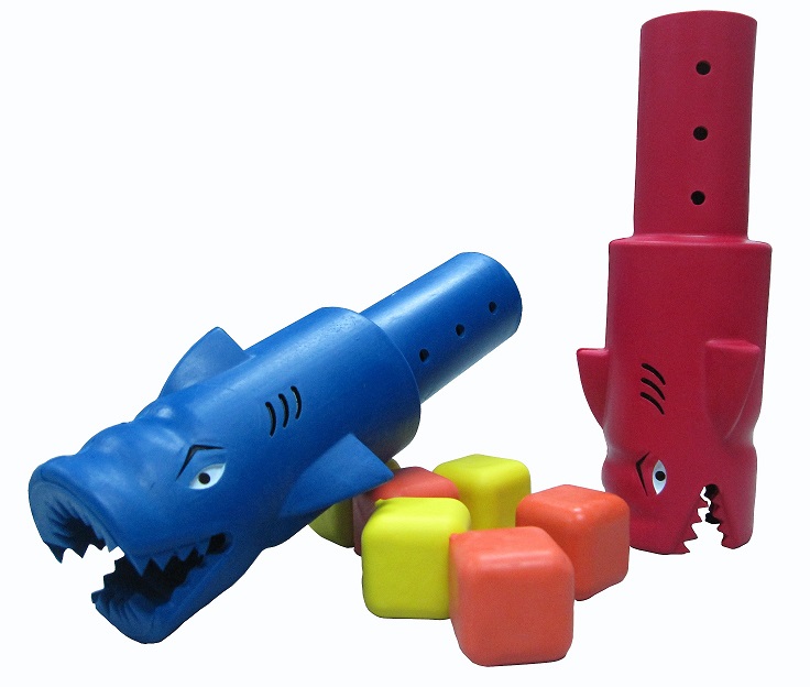 It is pool game that could help to discover the diving and focusing ability. A game set of this consists of Hungry Sharks and 6 Rubber Sink Balls. The underwater visible rubber balls sink to the bottom of the pool, swimmers to dive in with their handy Hungry Shark to collect the balls. The Hungry Shark is specially designed with comfortable shaft and rigid collecting point allowing the rubber jaws to naturally swallow the rubber sink balls. Winner goes to the one who collects the most sink balls.