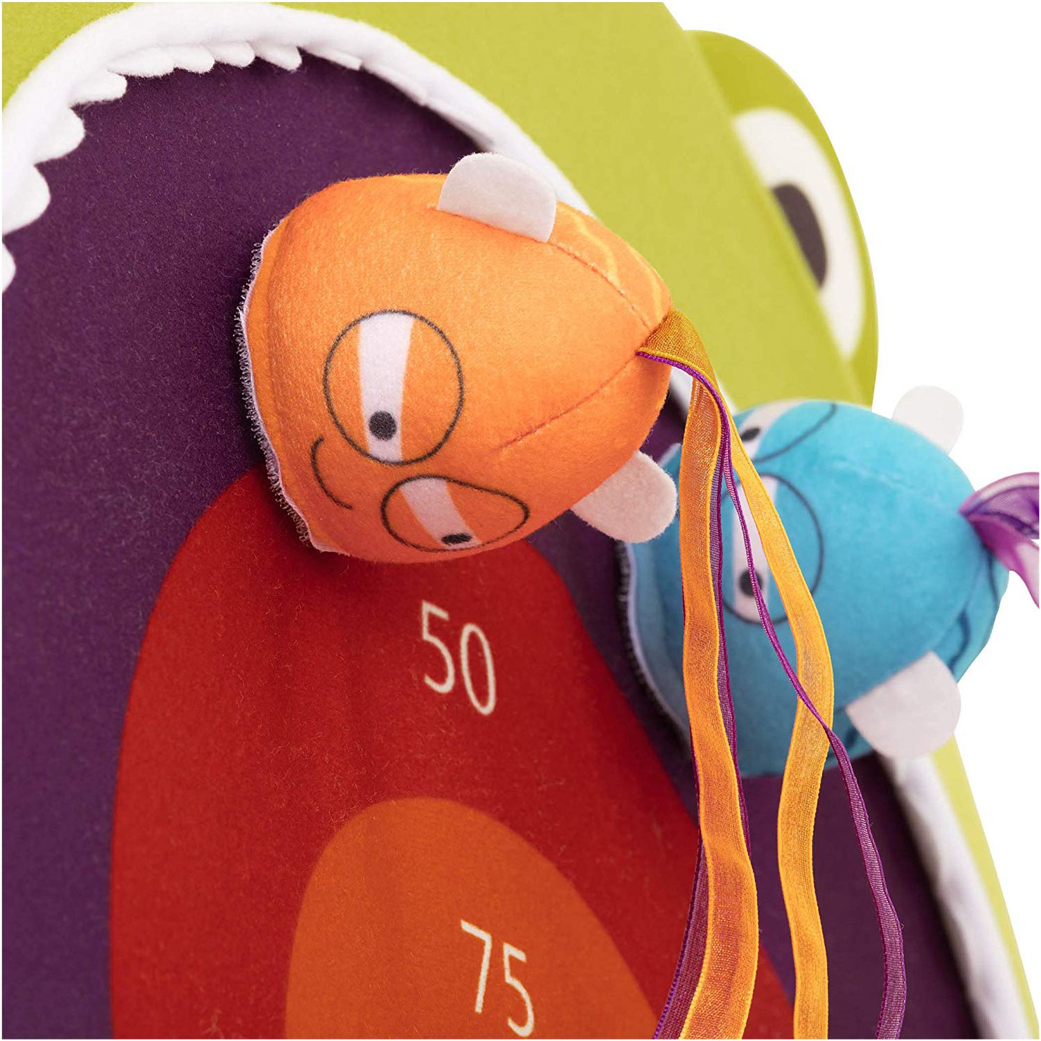 • Dimensions: frog dart board is 17"(W) x 20"(h) x 3" (D); fish fabric balls are 2” in diameter