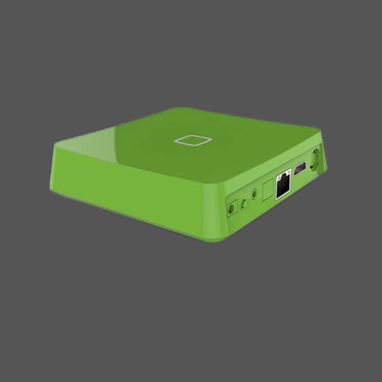 This is a hybrid box with a bright green housing in a quadrilateral shape. It is designed with the Android Kitkat 4.4 operating system for smooth and high-speed performance. The rugged and strong structure promises a long service life.