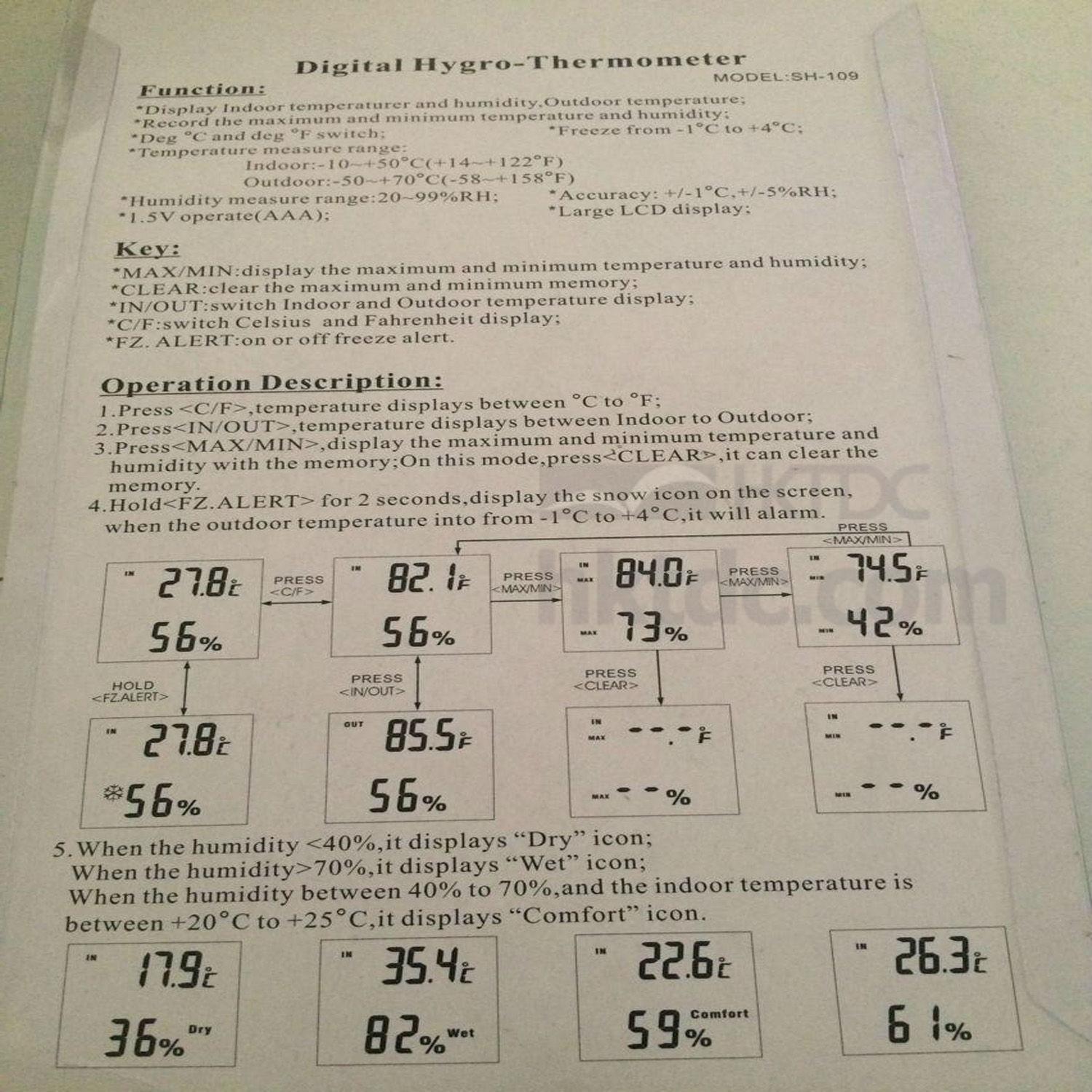 *Humidity measure range:20~99%RH; *Accuracy: +/-1C,+/-5%RH;
