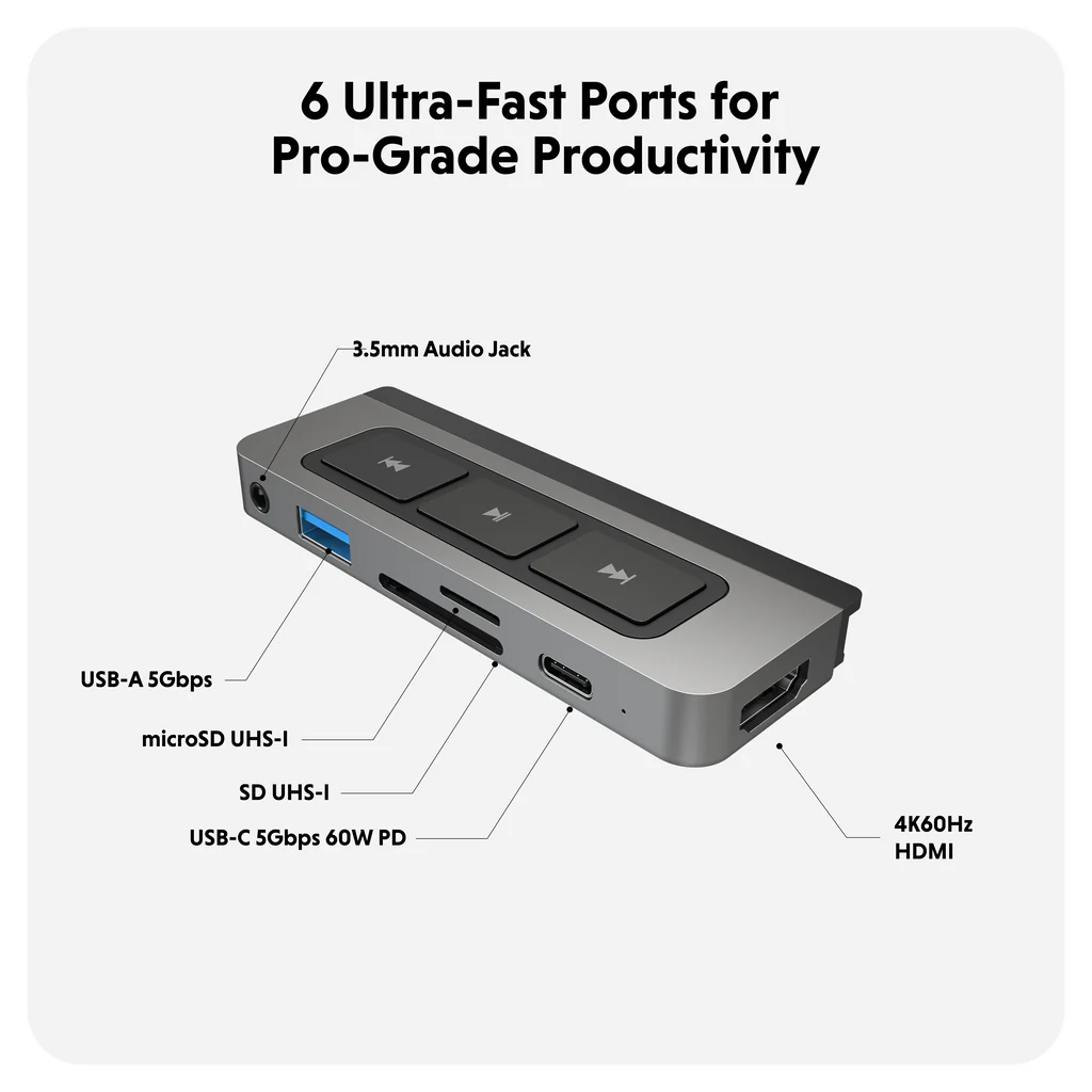 Hyper HyperDrive Media USB-C Hub (6-in-1) Compatible with USB-C iPad (10th generation), iPad Pro, Air or mini.