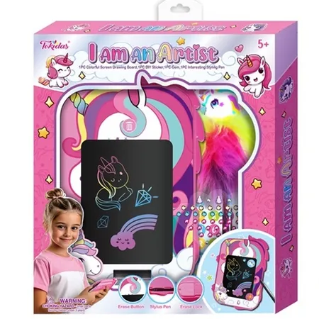 1PC Colorful Screen Drawing Board, 1PC Stylus Pen, 1 PC DIY Sticker, 1PC Interesting Styling Pen, 1 Gem