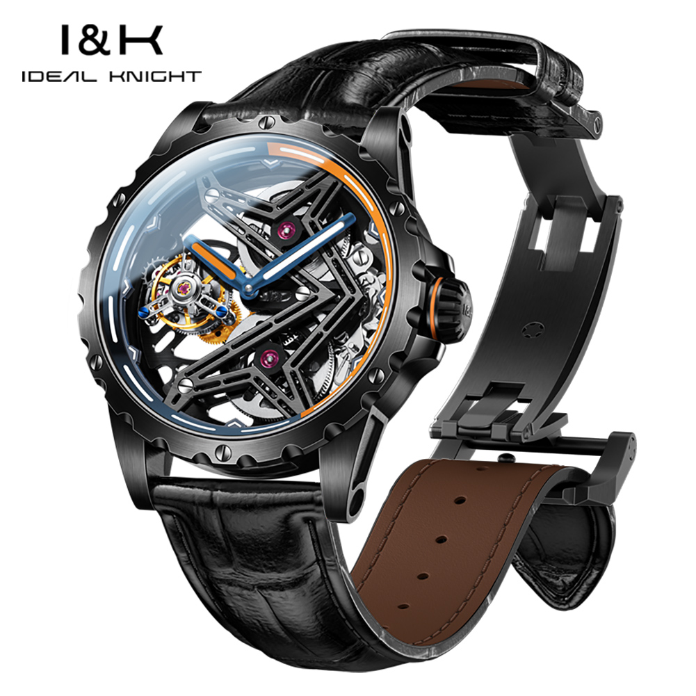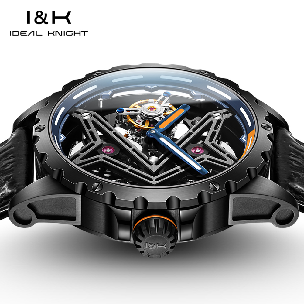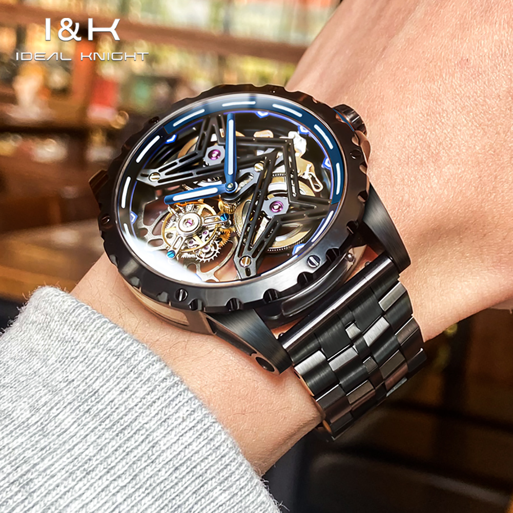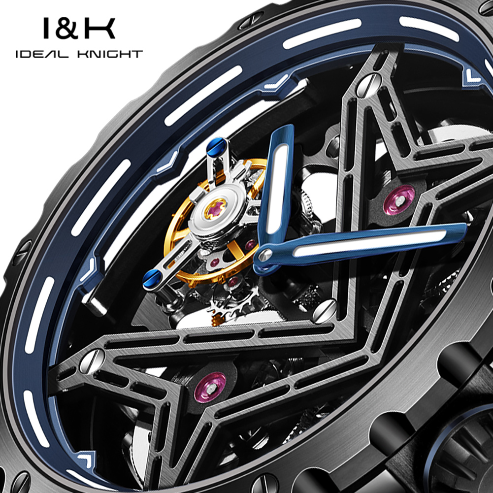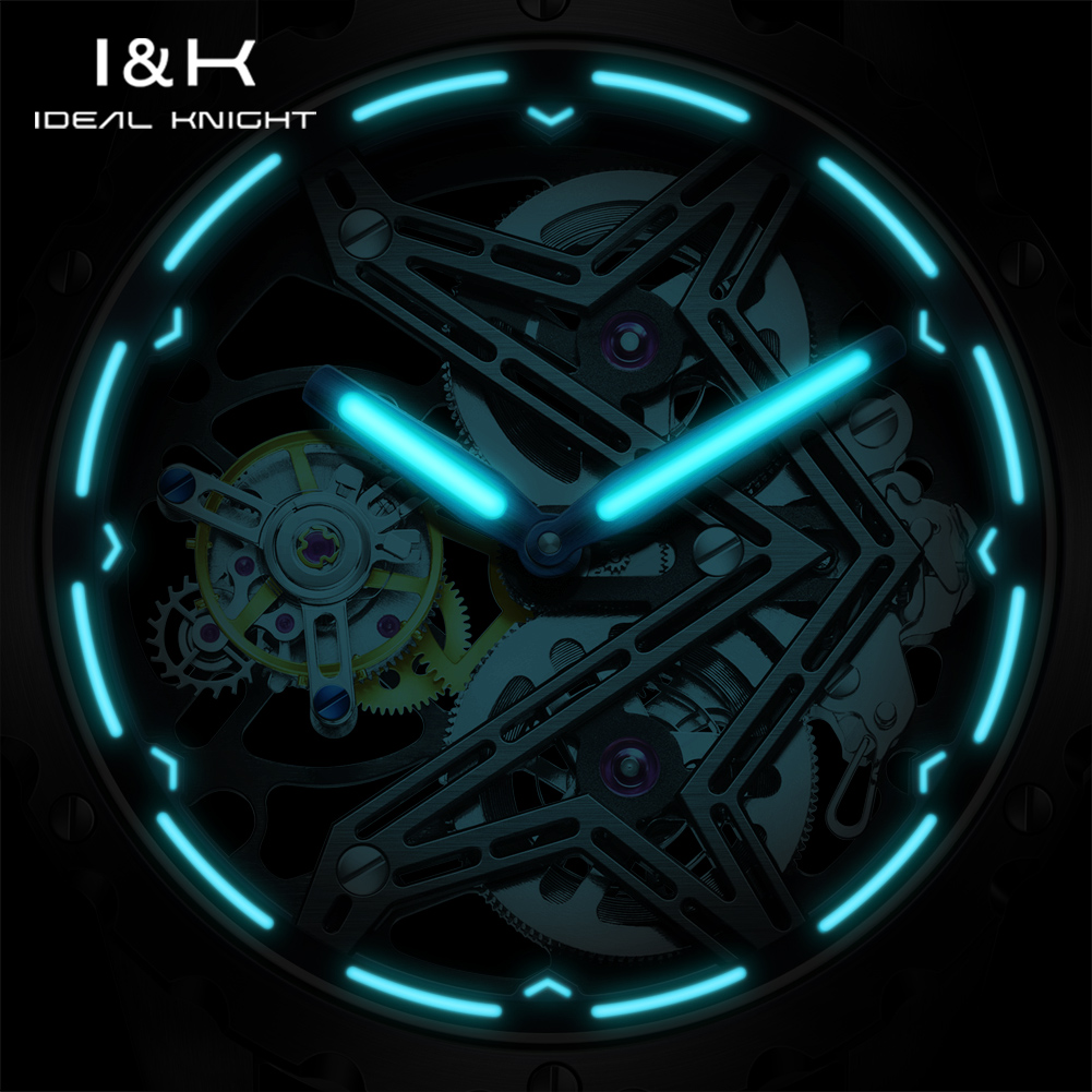 I&K 6803 Automatic Mechanical Wrist Watches Skeleton Tourbillon Self Winding Watches Fashion Casual Sport Luminous Men Watch