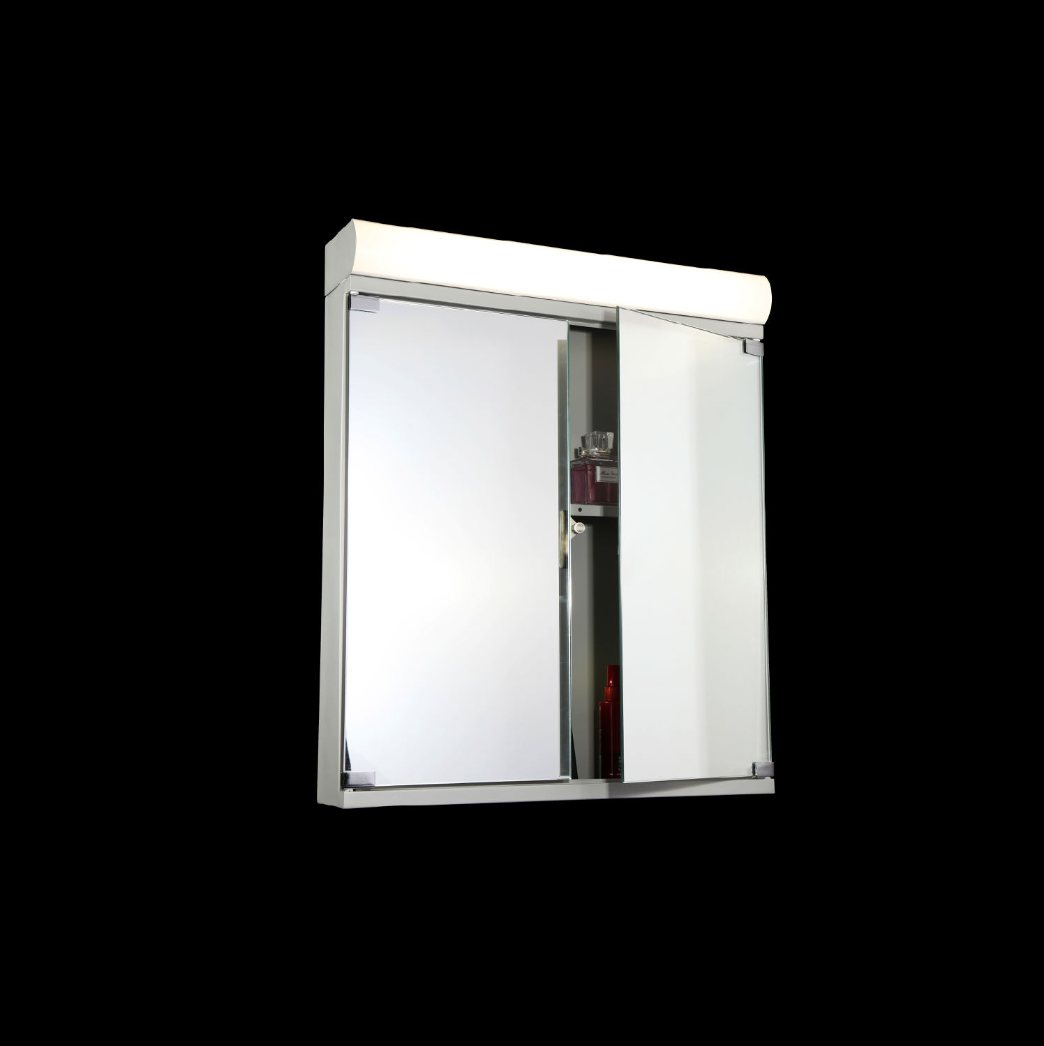 Illuminated bathroom mirror cabinet with shelf and double doors
