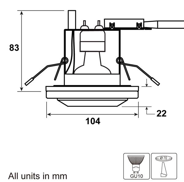 Dimensions: 104 (dia.) x 83 X 22mm (AxBxC)