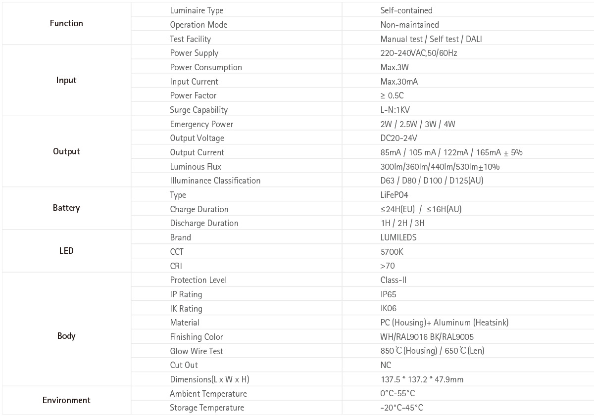 IP65 Self-Contained Emergency Surface Downlight Pro Rod Mounted