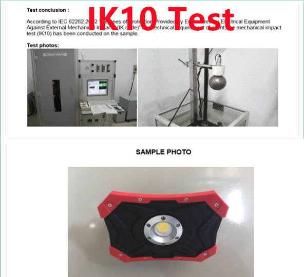 A4: IK10 for this work light, and the IK testing report is available if needed.