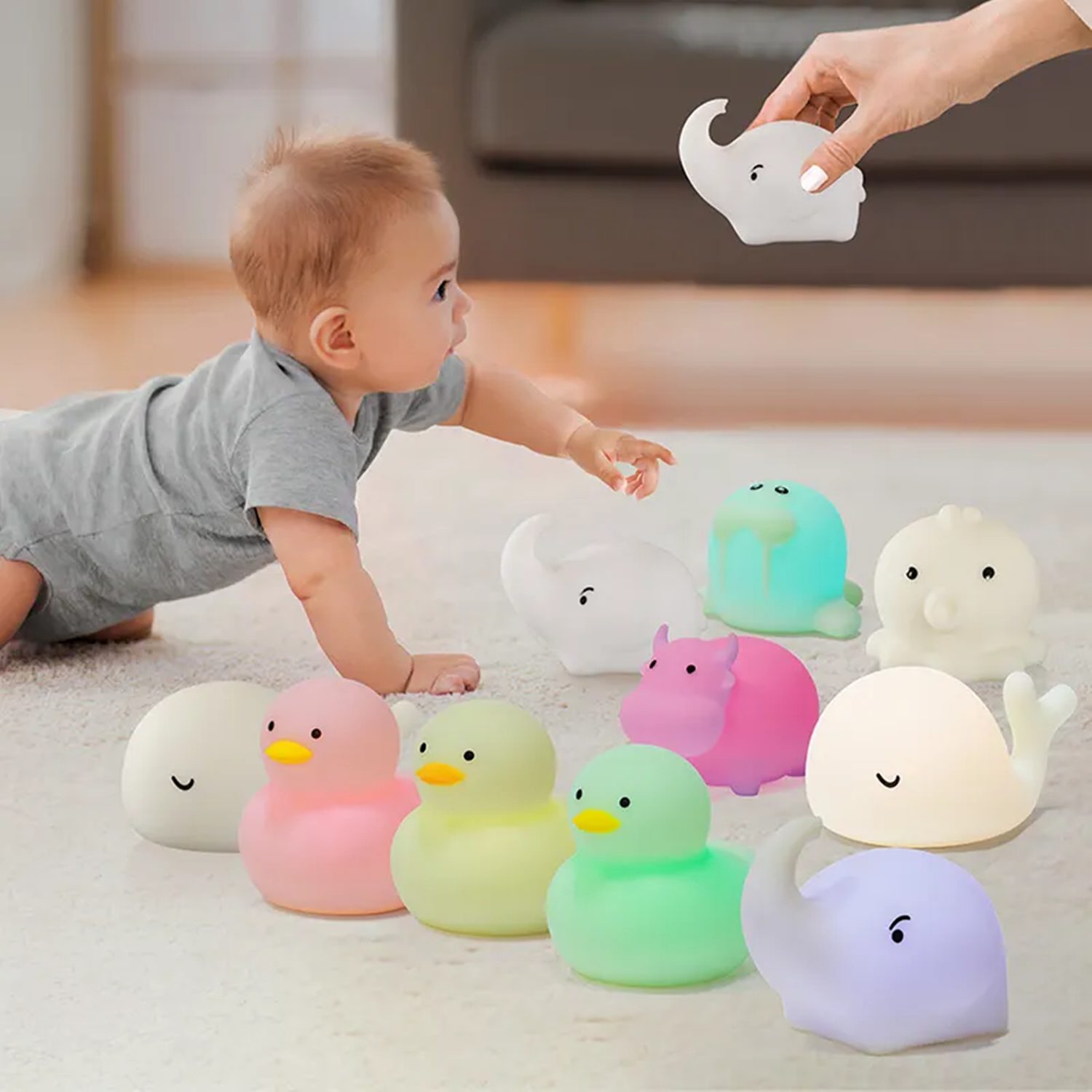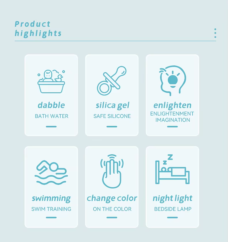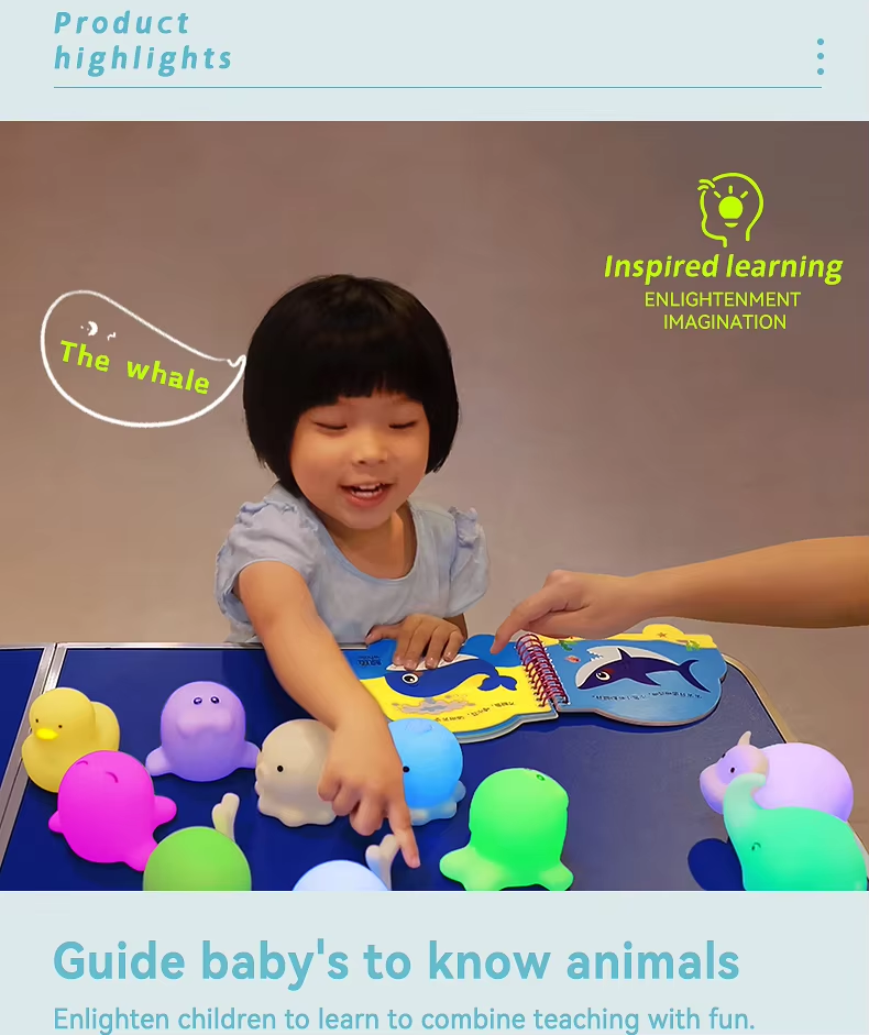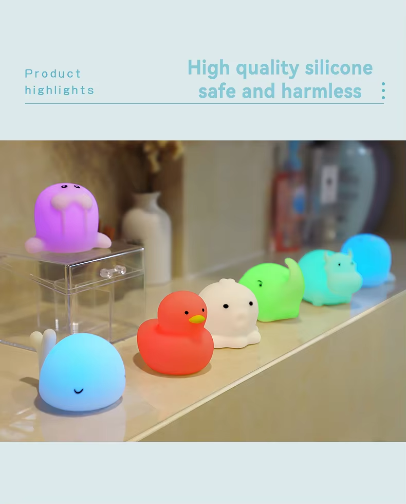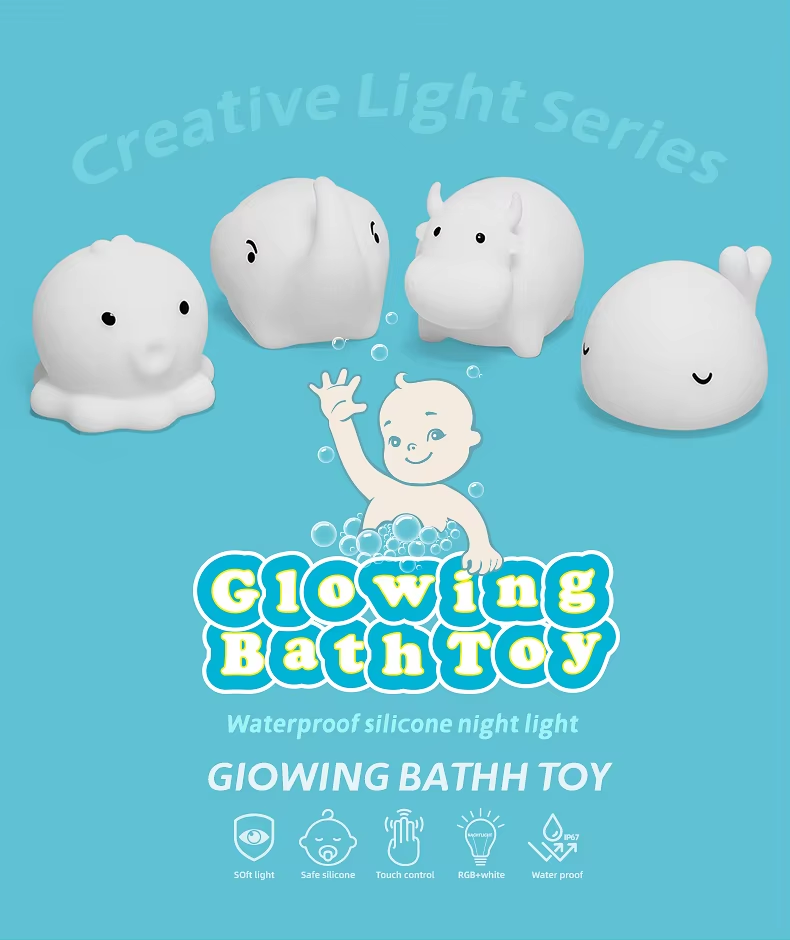 Discover our charming animal-shaped silicone bath lamp toys! IP67 waterproof, BPA-free, and perfect for bath time, night lights, and sensory play. Safe for babies & toddlers.