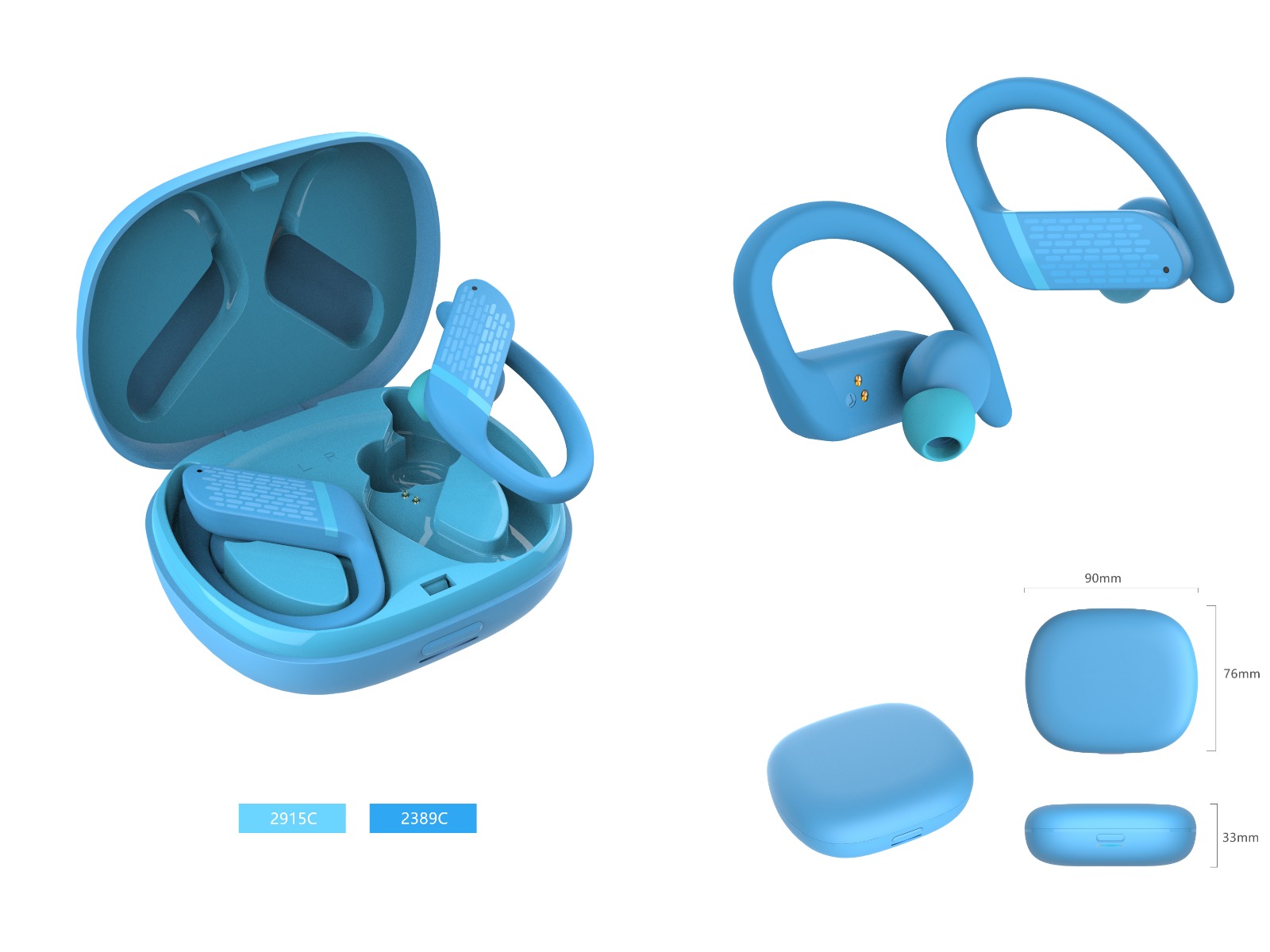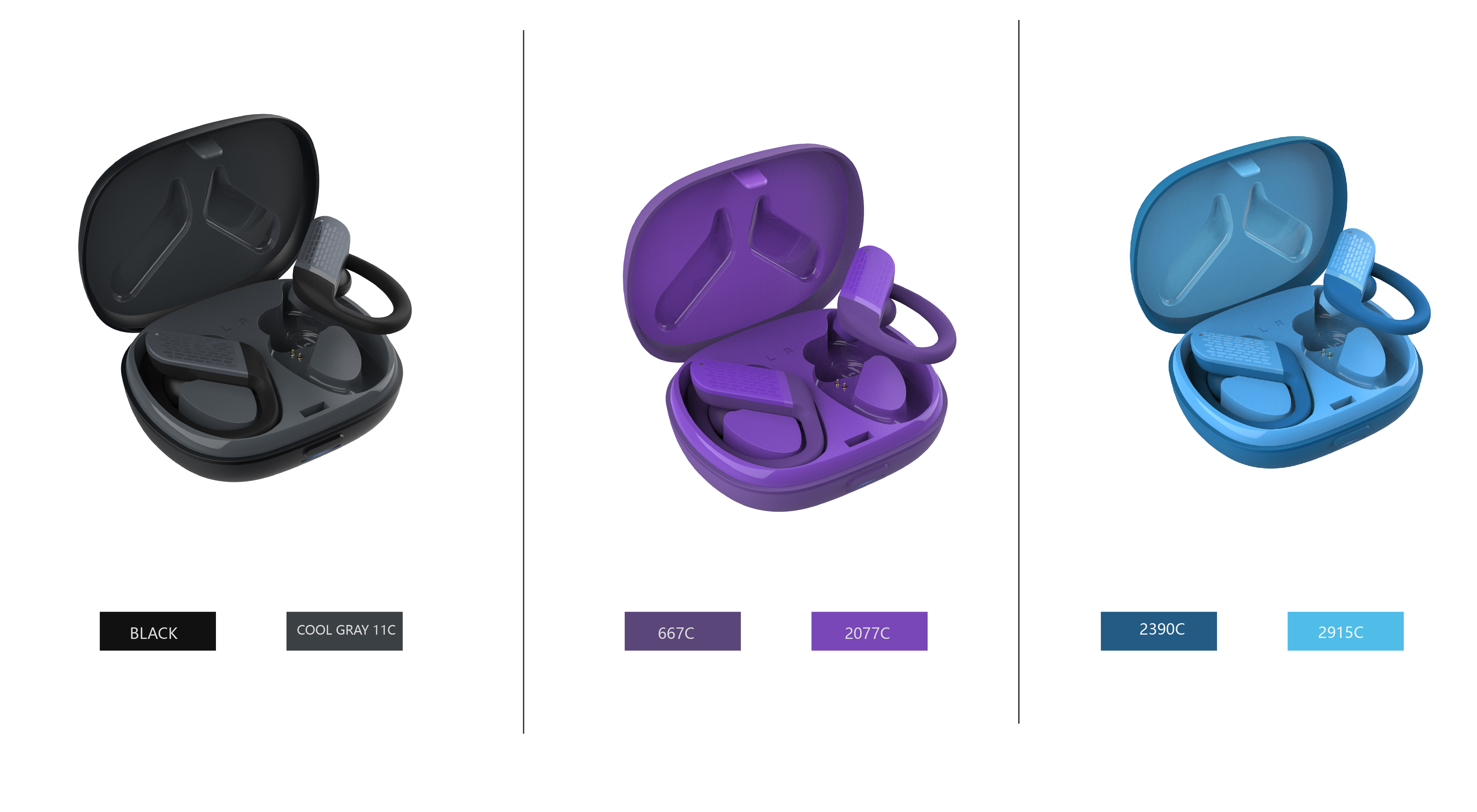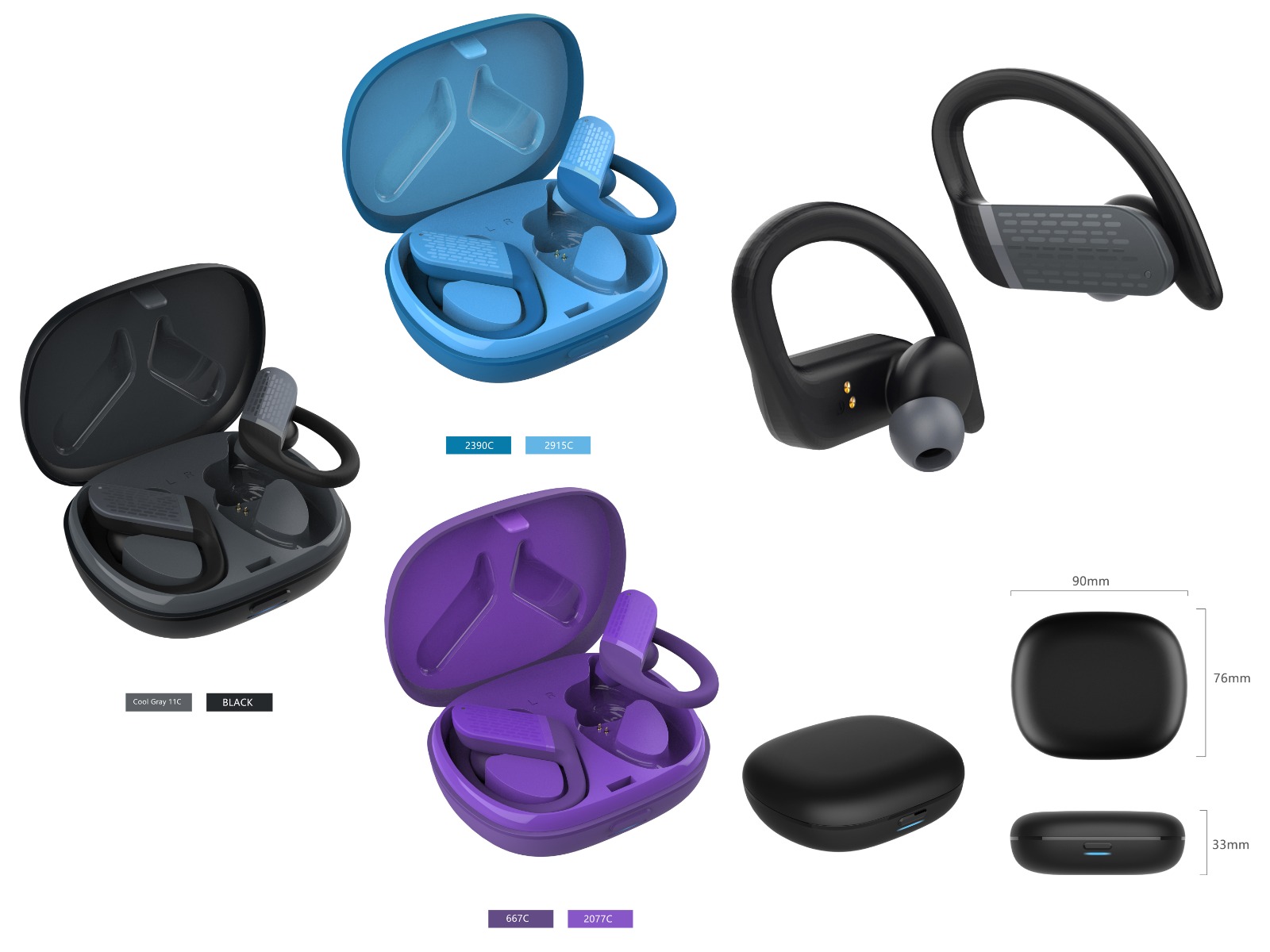 Ear hook color: Blue / Black / Purple / OthersPower on after taking out from charging box