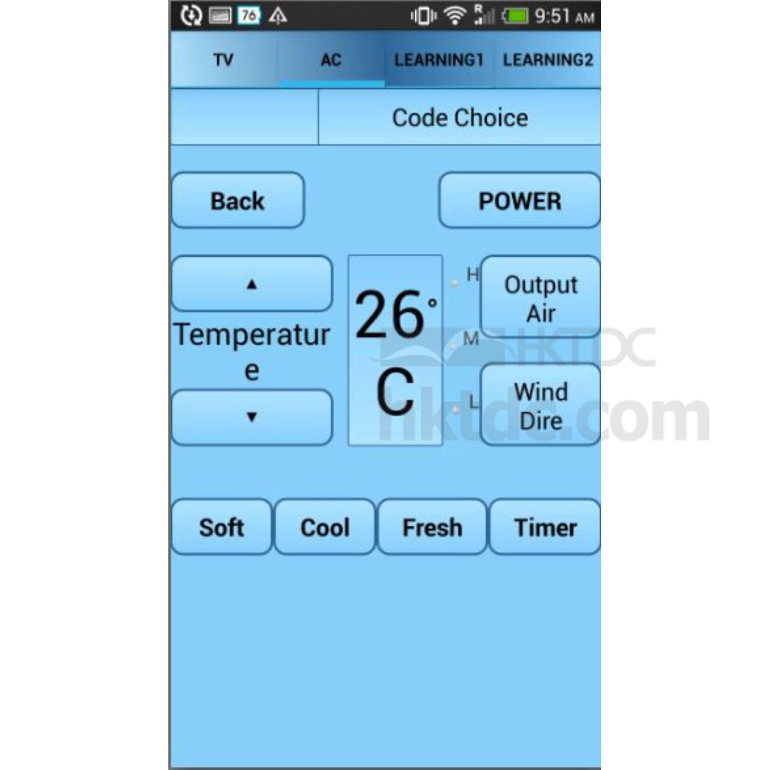 Plug an AW-2005 into USB interface power adapter or power supply. You can use a smart phone to remote control an AW-2005 via Bluetooth or add a cloud gateway (Model Number: AW-2000) or a cloud Wi-Fi BLE outlet (Model Number: AW-2111BT) to control it from the outdoors. Once an AW-2005 connects with the smart phone or Gateway (AW-2000/AW-2111BT) successfully, the maximum wireless transmission distance is up to 20 meters, and indoor Bluetooth wireless transmission distance range might depend on indoor environment. A AW-2005 can remote control four individual infrared electric devices. Default electric devices include TV, air conditioner, and two auto-learning setting functions.