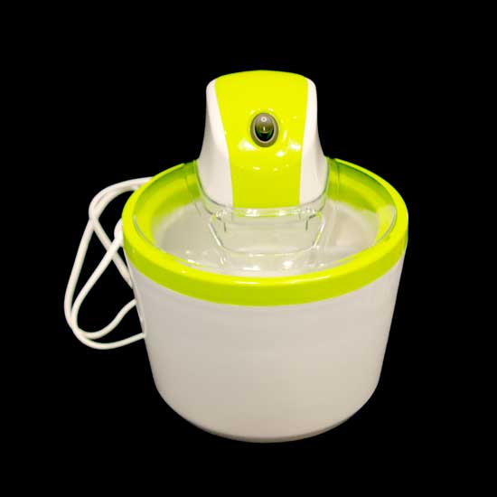 This electrical ice cream maker will appeal you with its bright and fresh appearance in white and green. It features a transparent lid with a hole and a button on top. The attractive ice cream maker is designed with double insulation for maximum security.