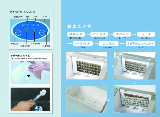 One mold ice cube (minutes): large size is about 16 minutes, medium size about is 14 minutes, small size about 12 minutes (according to work temperature 20-25℃).