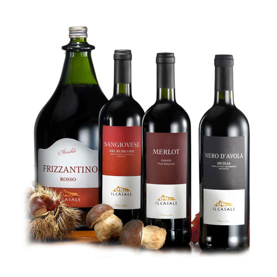 Presented here is a fabulous collection of Italian red wines. Included in this selection are Montepulciano d'Abruzzo, Frizzantino Rosso, Sangiovese, Merlot and Nero d'Avola. These fine red wines are also available in family size.