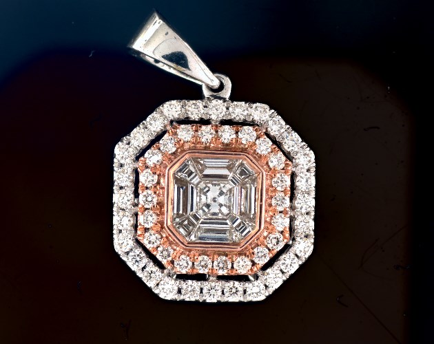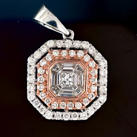 Illusion Asscher Shape 18K White Gold 1.20cts Look Pendant