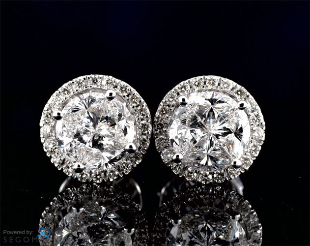 Illusion Round Shape 18k White Gold 1.40cts Look Earrings