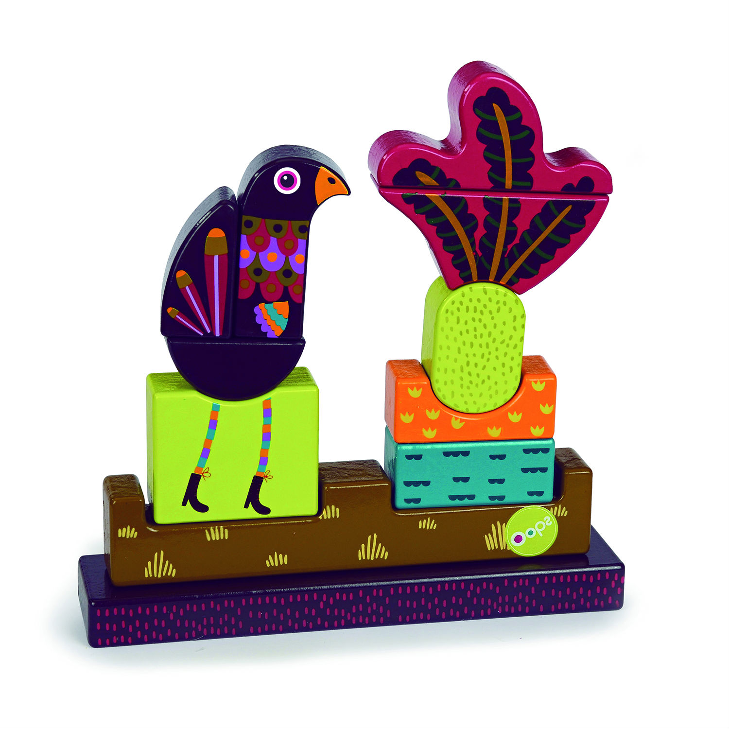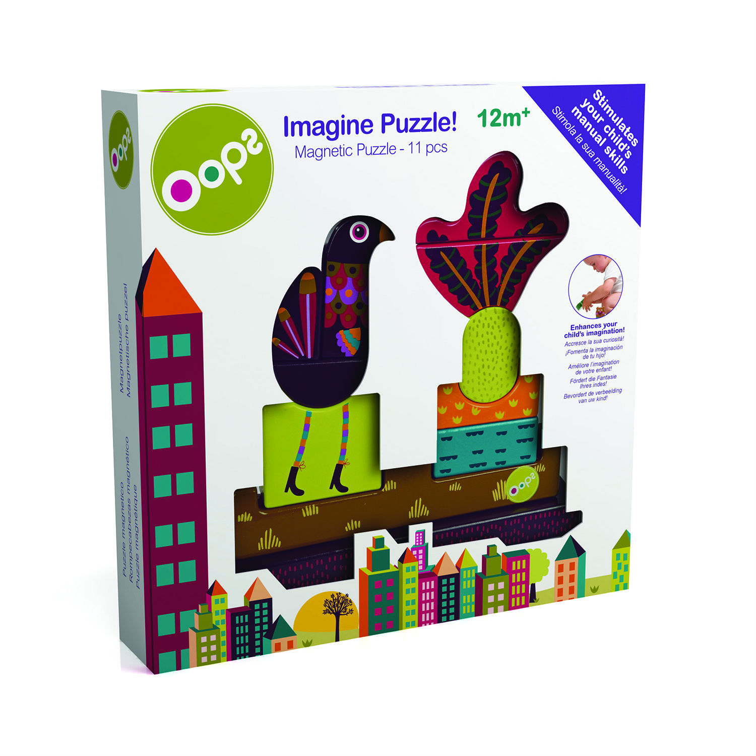 Fun and vibrant colours, high quality wood, and a unique vertical layout engage baby and help his development of coordination and manual skills. The magnets in each piece gently guide baby to the completion of the puzzle and help keep the toy in place.