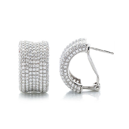 This is a pair of sparkling earrings paved with CZ stones. Mounted on sterling silver, these earrings come in a stylish curved panel shape. These beautiful imitation earrings are great for everyday wear to spice up your look.