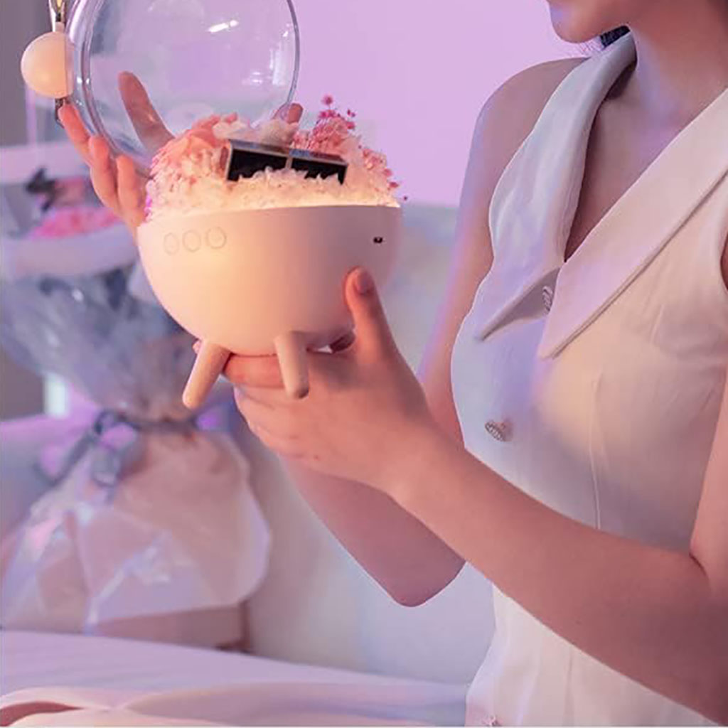 Built-in imitation preserved flowers with unique shape can be used to decorate the environment, and it has atmosphere lighting and Bluetooth speaker functions