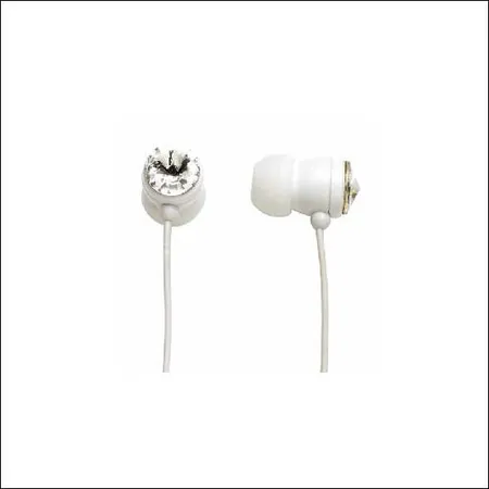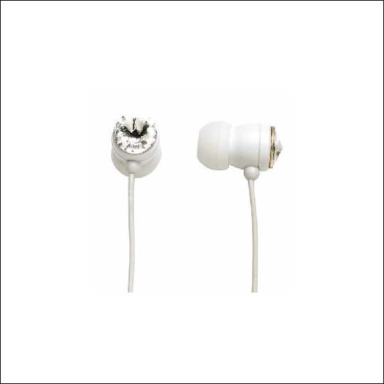 Wear this pair of in-ear earphones whenever you want to enjoy your favorite music. They feature a white appearance accented with diamante pieces on the ear bud exteriors. Practical and stylish, they are simply one of the must-have items for music lovers.