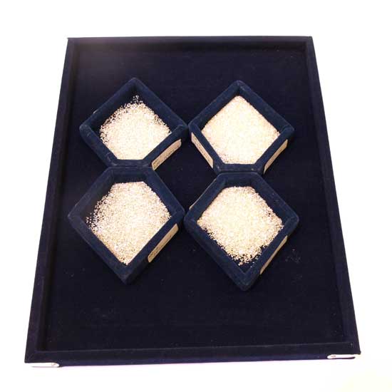 Featured in the display case are 4 heaps of Indian diamonds that flaunt exceptional shimmer with enhanced glamor. The single cut helps to bring a sense of simplicity and antiquity to these diamonds. With the splendid dazzle, these diamonds are perfect to add artistic flavors to ladies' timepieces.