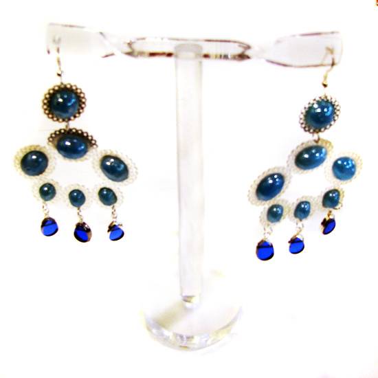 This is a pair of Indian style earrings. The costume earrings are designed with circular patterns linked one by one and drops in teardrop shapes. The drop earrings pieces are of an ethnic and culture style and are very nice looking.