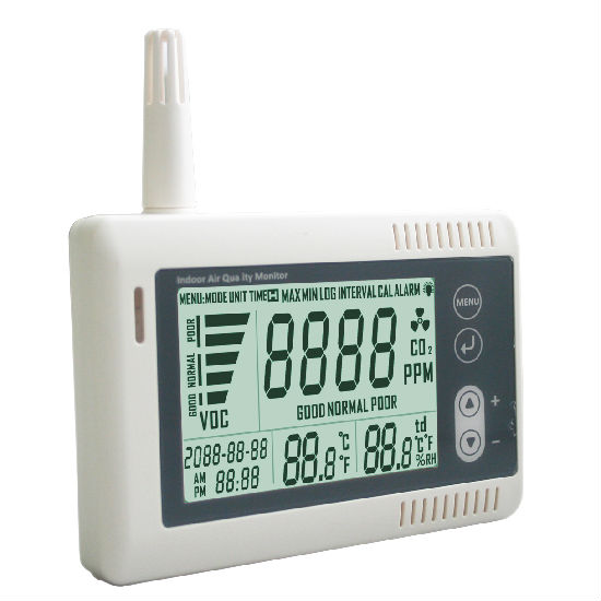 Features: Measuring :Temperature,Humidity,CO2, Accuracy:Temperature:+/- 0.5°C ,Humidity:+/- 3%RH ,CO2: +/- (50ppm+3%) Sensor:Humidity:Capacitive CO2: NDIR Correspod time: CO2 :,(T90) 60s; Temperature and humidity: 1/e(63%)change ,Slow flow rates 10s Alarm: Sound and light alarm Operating: Touch buttons USB interface Input power : 5VDC Power consumption :1.5W