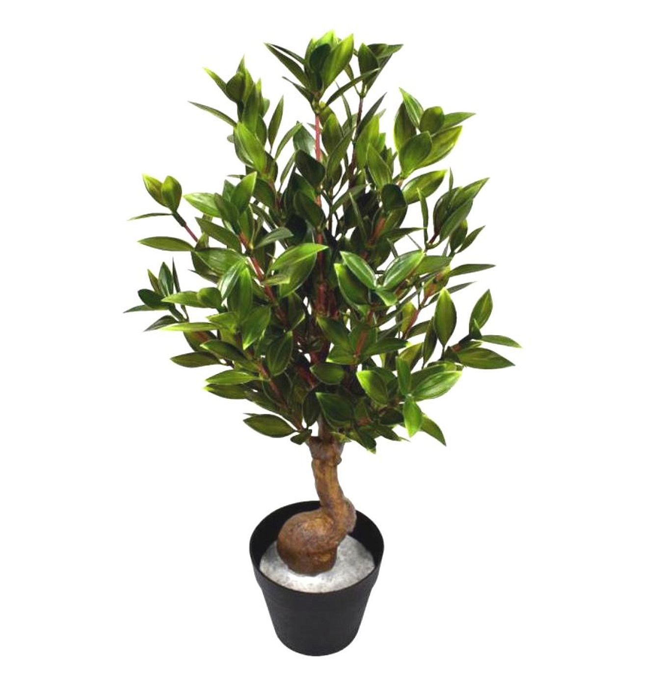 This artificial ficus benjamina tree is made of plastic. It creates a green accent to beautify the space. It is a good decoration for your home or workplace.