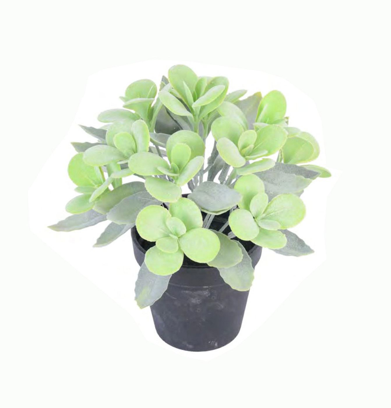 The artificial plant of the table plant tree on a plastic base.