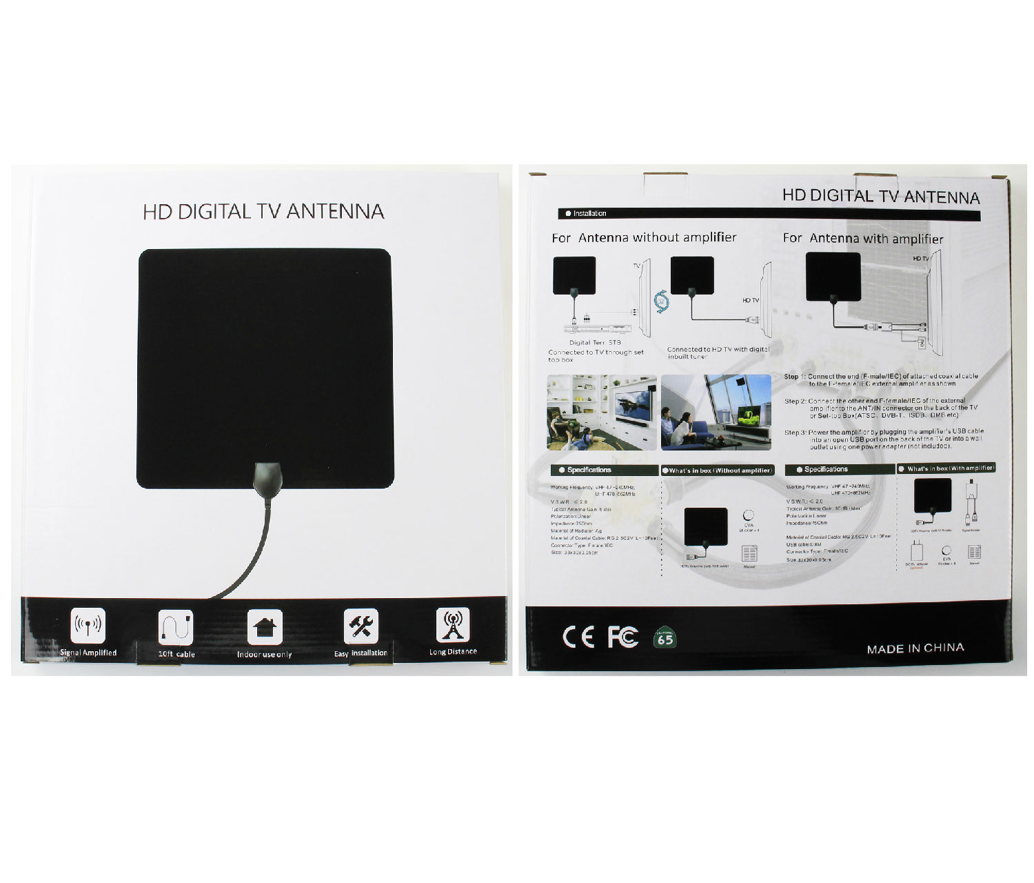 Featured here is a digital HD TV antenna for indoor area use. It comes with a long RG6 coax cable for flexible set up and flaunts a reception range of more than 60 miles. This digital HD TV antenna can improve the reception of your TV and allows users to enjoy more TV programs.