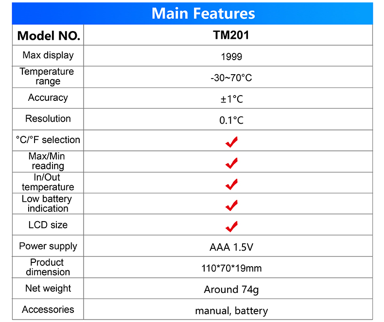 Indoor Outdoor Thermometer Carrefour Factory Direct Sale Temperature Alarm Setting TM201