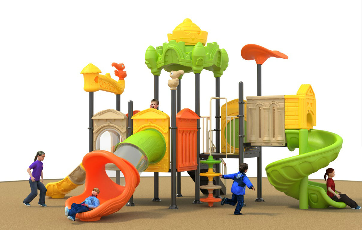 Cartoon Kingdom Series Indoor and Outdoor Playground Equipment with Tube Slide and Spiral Slide
