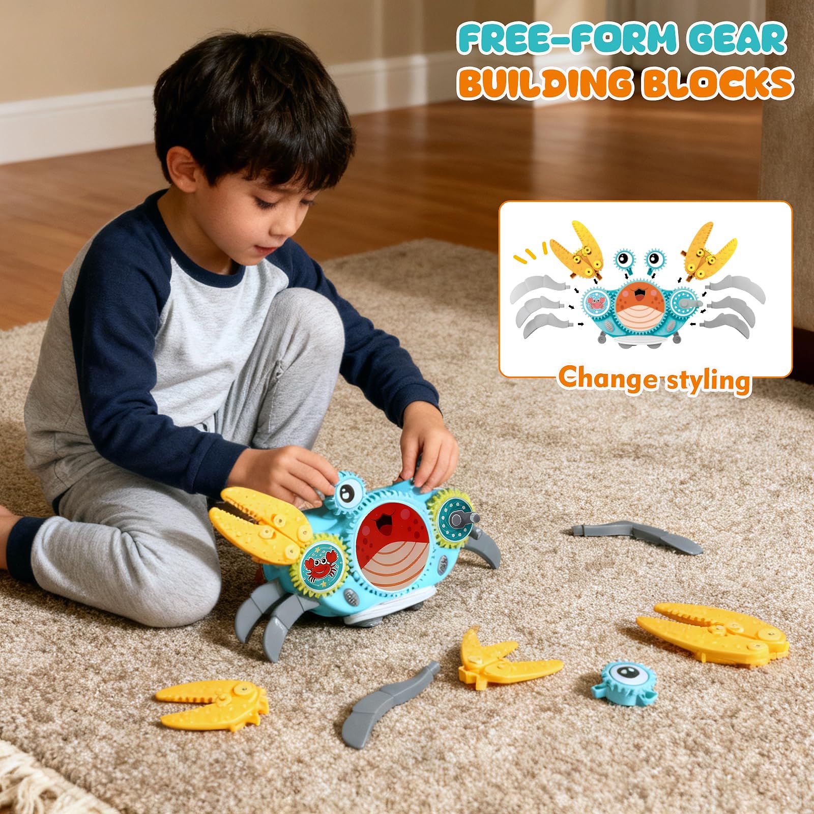 Function: Music + Flashing LED lights + Build with gears
