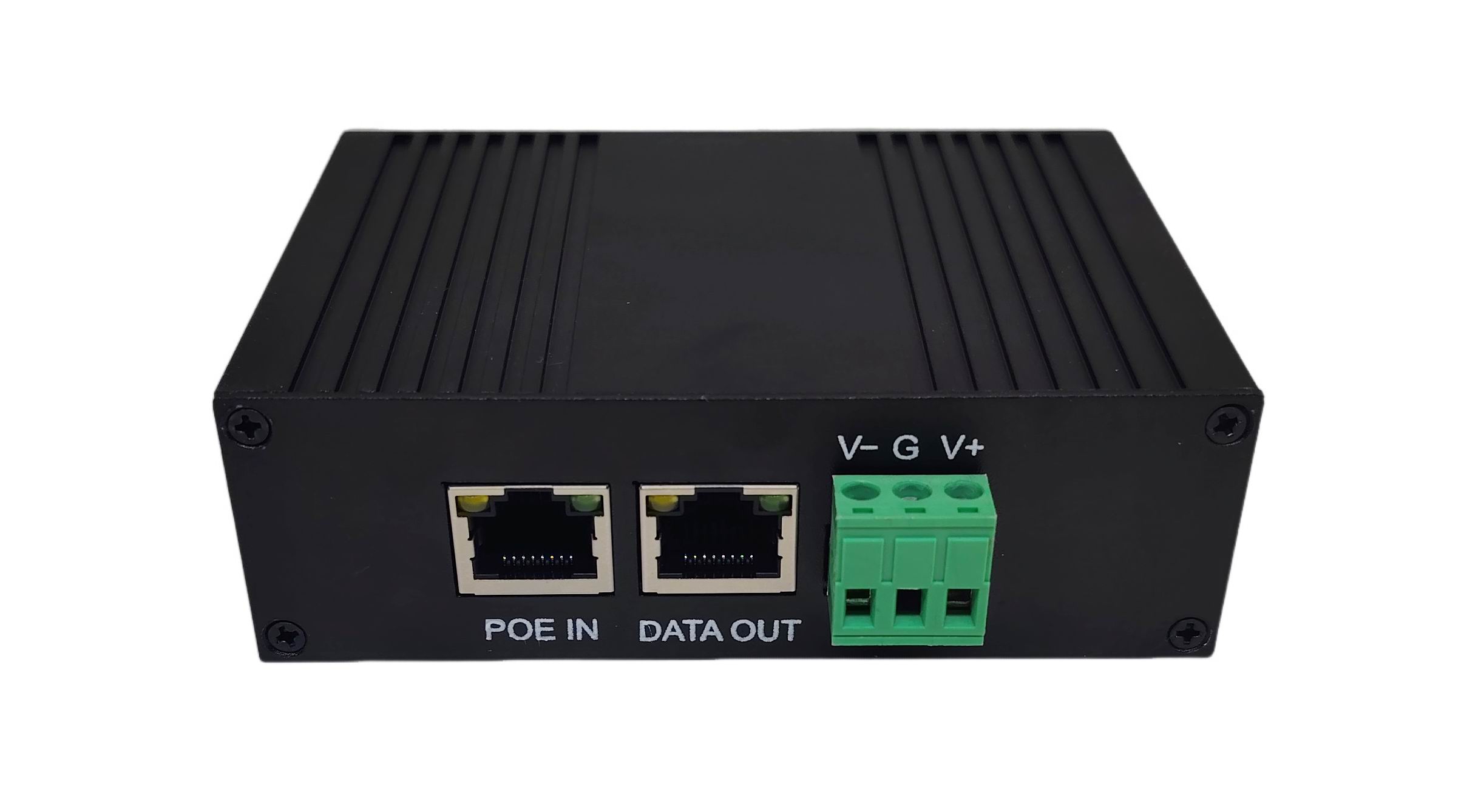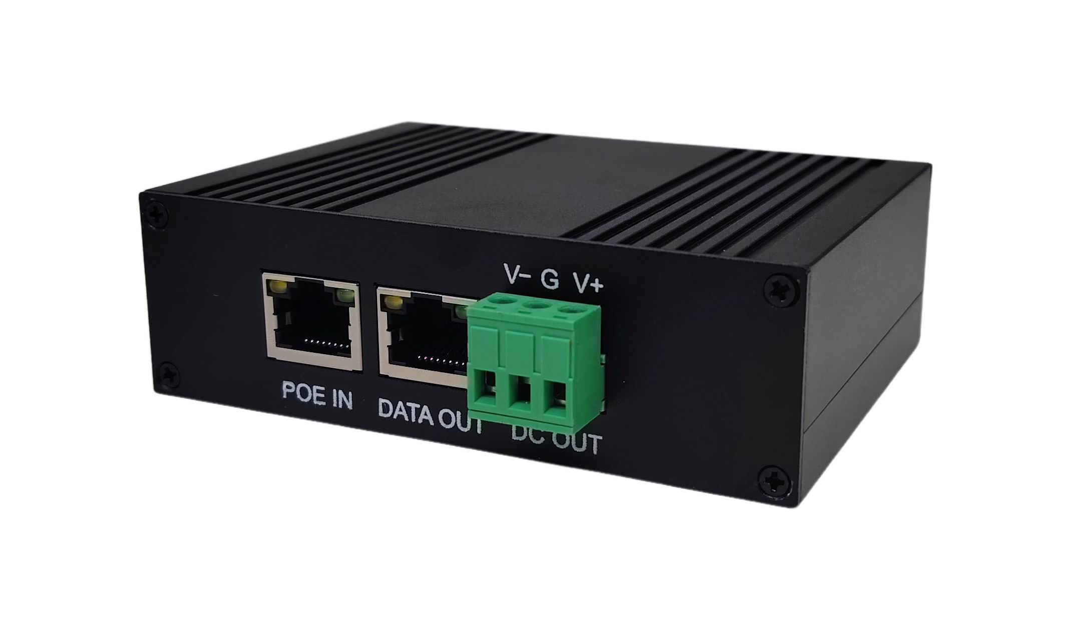 This series is an Industrial Grade, Gigabit Ethernet, PoE Splitter, designed to deliver data, via RJ-45 Ethernet connector, and electrical power, via screw terminal block, to non-PoE devices. This device saves the high cost of running separate electrical service to edge devices.
