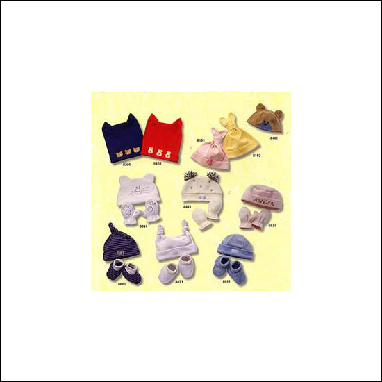 Infants' hats, mittens and booties in fine knit fabric with embroidery