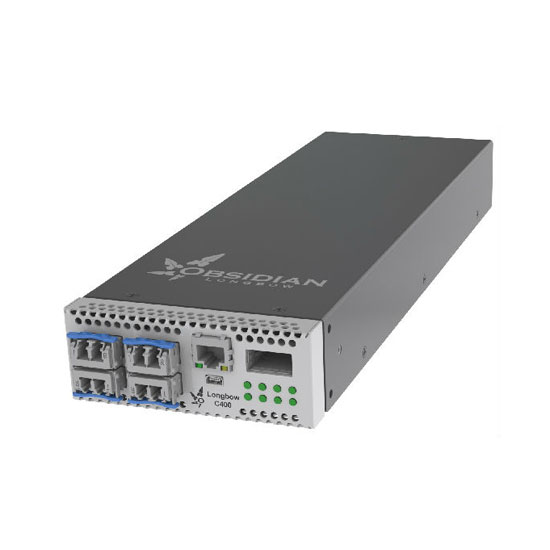 A pair of Longbow C400 devices communicates over 4, 2 or 1 10 Gbits/second WAN light paths at distances of up to 1,600km (1,000 miles), connecting locally to InfiniBand LAN infrastructure through 4X QDR, DDR or SDR InfiniBand (IB) ports. The Longbow C400 series devices report as two-port InfiniBand switches to the subnet manager - the fabrics at each end-point location unify into a single subnet. Longbow C400 devices perform buffer credit extension at the link level. When combined with up to four 10Gbits/second serialized optical data streams at the physical layer, they allow InfiniBand to reach much farther than any other technology. Since C400 series devices use a proprietary optical WAN encoding, they must be deployed in pairs, connected by direct light paths.