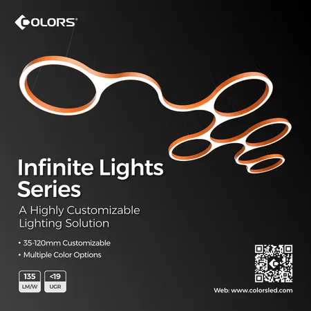 The Infinite Lights series is a highly customizable lighting solution that revolutionizes the boundaries of customized lighting with its innovative production processes and modular product design concepts. lt breaks free from the limitations of product size and shape, giving designers unprecedented freedom to transform graphics into lighting fixtures at will. It offers three sales models: ready-made shapes, modules, and customization, fully meeting the diverse needs of different projects.